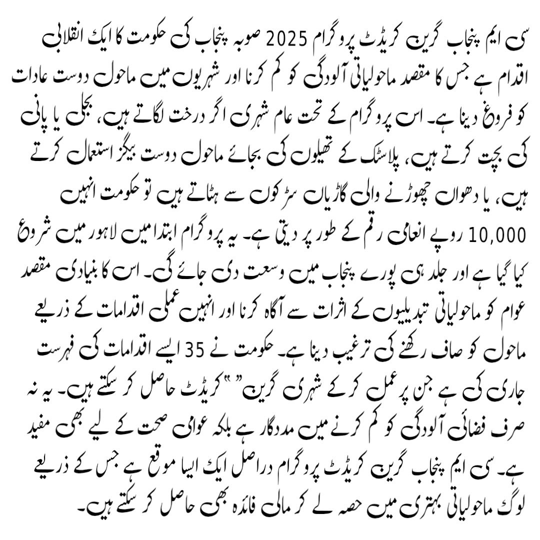 The CM Punjab Green Credit Program is a brilliant step toward a cleaner and greener Punjab. By participating, you not only help protect the environment but also earn financial benefits. If you live in Lahore, take the first step today — your actions can make a big difference for the future. 👉 Read More