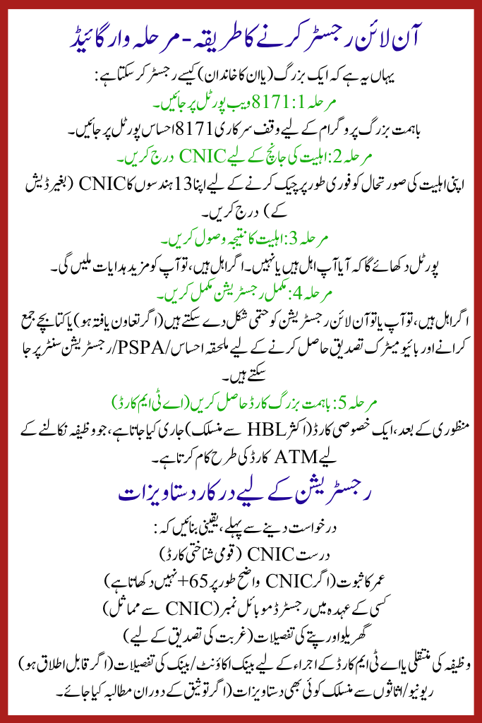 If you or your elderly relative qualifies, don’t delay: visit the 8171 portal, check eligibility with CNIC, follow registering ladders, get your Ba Himmat Buzurg card, and instigate in receipt of your salary. Together, we can ensure that no elder is left late in our civilization.