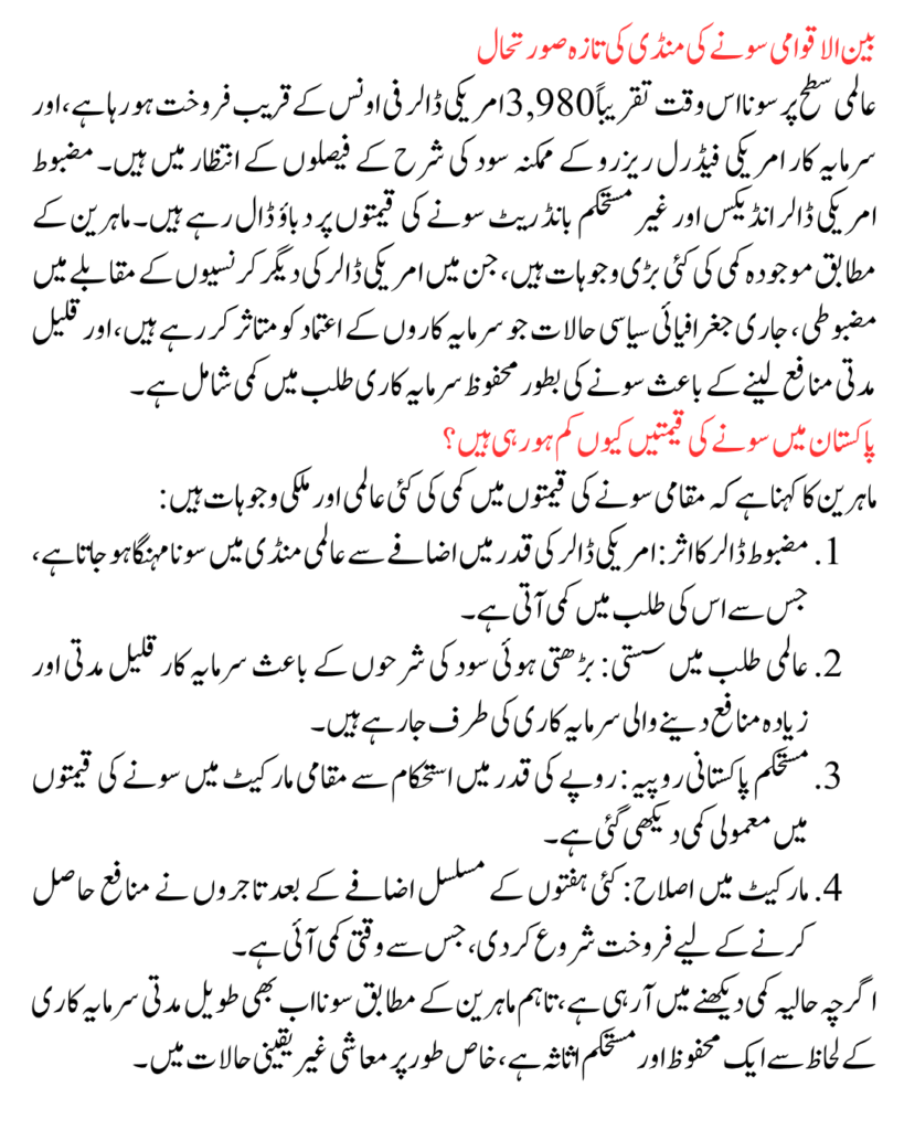Gold continues to hold its place as one of Pakistan’s most trusted assets. Whether in the form of jewelry, bullion, or digital gold, it remains a symbol of financial security and a shield against inflation. Historically, gold has performed well during times of currency depreciation and economic slowdowns, making it a preferred choice for investors seeking stability.