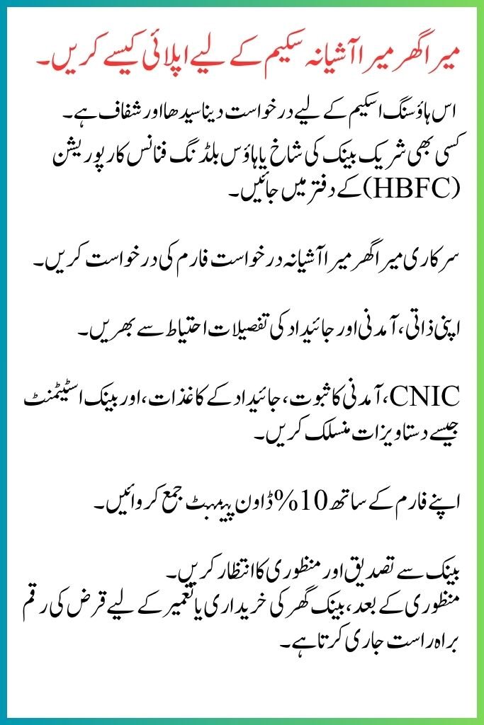 You can apply through a wide range of banks offering this scheme: All Commercial Banks, Islamic Banks (Shariah-compliant housing finance), Microfinance Banks (MFBs), and House Building Finance Corporation (HBFC). Visit your nearest branch today to start your journey toward home ownership.