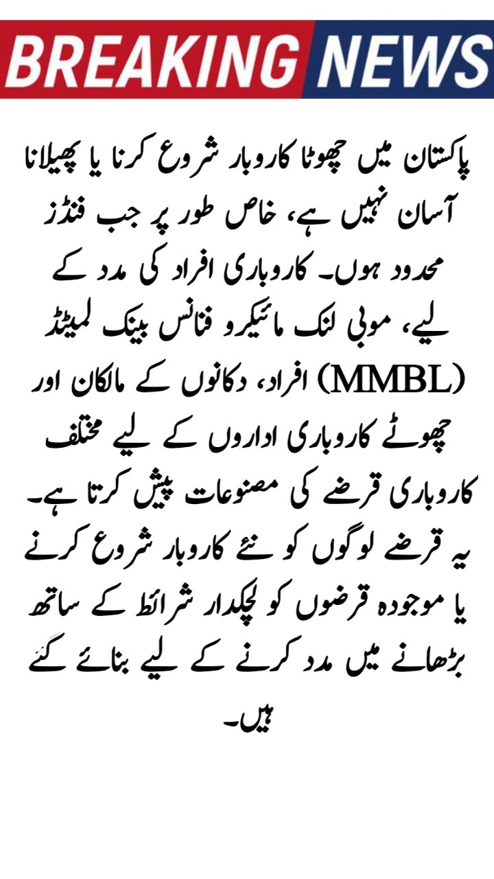 Starting or expanding a small business in Pakistan is not easy, especially when funds are limited. To support entrepreneurs, Mobilink Microfinance Bank Limited (MMBL) offers different business loan products for individuals, shop owners, and small enterprises. These loans are designed to help people start new businesses or grow existing ones with flexible terms.