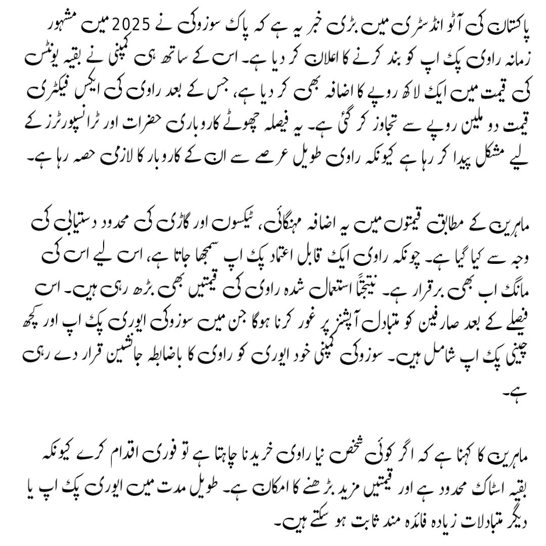 If you want a brand-new Ravi, act quickly, as remaining units are limited and prices are expected to rise further. For long-term users, exploring the Suzuki Every pickup may be the smarter investment, while used Ravi pickups will remain valuable in the market.