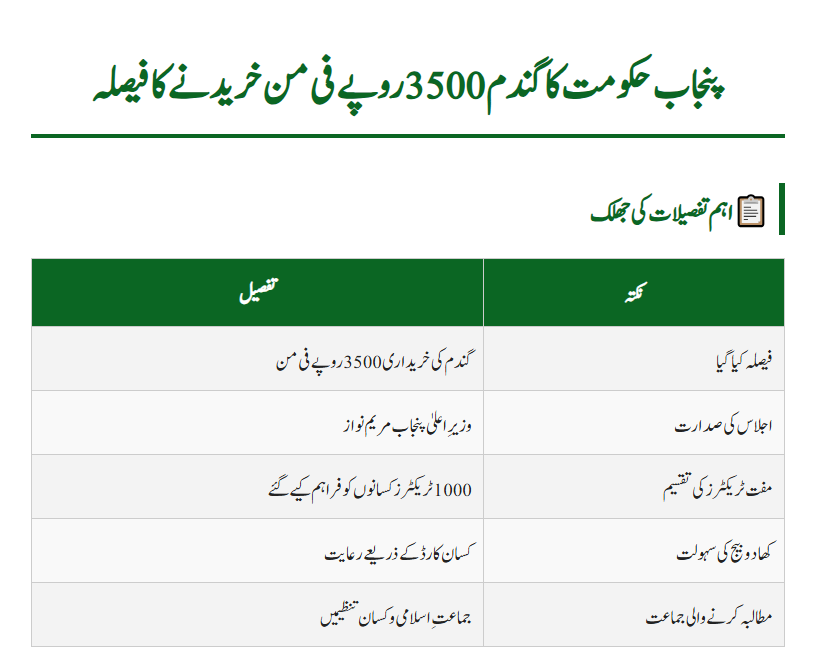The Punjab Government Wheat Price Rs. 3500 per Maund decision is part of a broader agricultural reform plan aimed at stabilizing the market and supporting farmers.