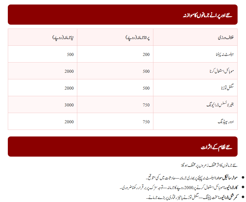 Punjab Traffic Fines Changes – Old vs. New Fine Rates