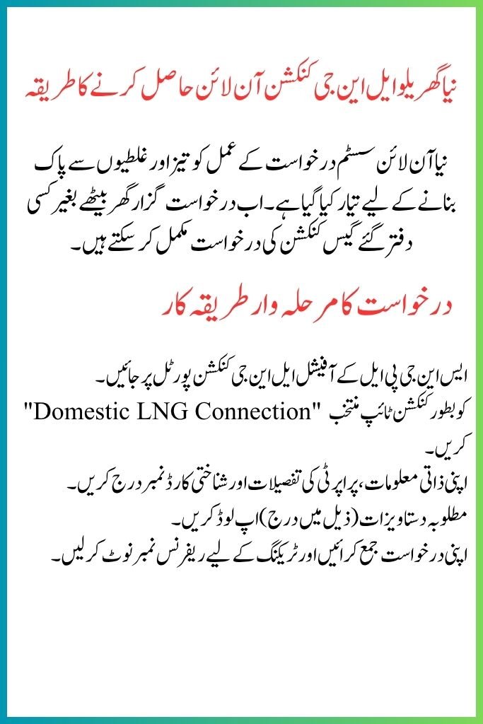 The SNGPL LNG Gas Connection 2025 system is a modern and transparent initiative that ensures efficiency, sustainability, and convenience. Whether you are applying for a new connection or reapplying under a previous demand notice, the process is now simple and fully digital. Make sure your documents are ready and submit your application online today to secure an uninterrupted and eco-friendly energy supply for your home.